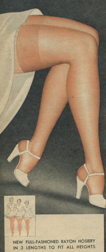 Hosiery– for dress wear are fully fashioned stockings, tan and sheer in texture. Your figure may influence your choice of colors for your stockings. For example if you are short and wish to appear taller, wear the same color from head to heels, including stockings to match your dress.If you want to look shorter, wear light toned stockings to match your light colored dress.