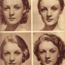 They all have a certain ‘look’ and one clear thing they all shared was the pencil thin eyebrow. The heavy kohl eye-shadows of the 1920’s vamp made way for newer and lighter shades. Cream eye-shadows began to appear from the big cosmetic names like Max factor who also launched the decade with his Lip Gloss and later in 1937 – Pancake water soluble makeup. Helena Rubinstein launched the first commercial water-proof mascara in 1939. Lipstick sales went through the roof and there wasn’t a magazine on a stall that didn’t have a pouting face staring back – advertising the lipsticks of names like Coty, Tangee, and Max Factor. The British Daily Mail” reported in 1931 that 1,500 lipsticks were being sold to women for every 1 being sold in 1921! Mascara was now in every girls makeup kit – a cake or bar with a brush to apply [ liquid mascara did not appear until Helena Rubinsteins Mascaramatic in the 1950s] .
