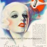 It wasn’t until 1949 when Hazel Bishop produced the first stay on lip rouge that this problem was solved. The overall look for a 1930s face was of a pinkish hue, but the tanned look was gradually coming in and foundations fro skin which helped give that sun-kissed look of California were now much sought after – especially in the cold dark winters! Powders were becoming more popular now that women needed their ‘face’ to remain glamorous throughout the day ( though never more popular than later in the 1950s). A quick pat in the powder room at her place of work was now a necessary part of a woman’s daily routine.
